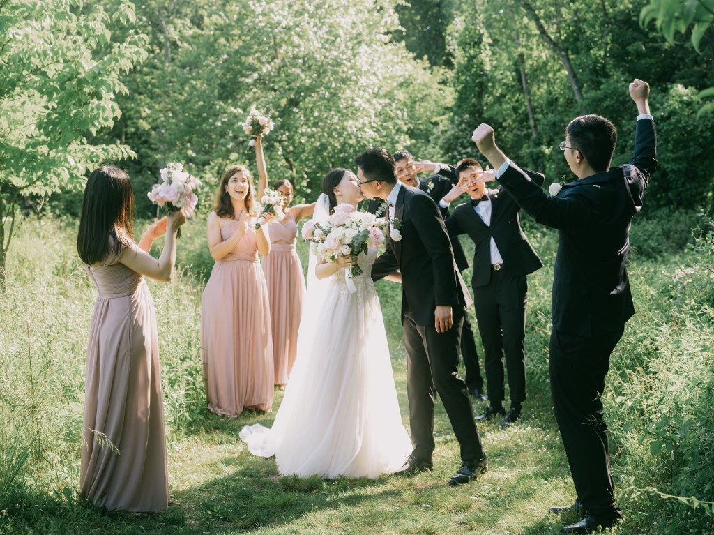 - 全天 (8 小时)婚礼跟拍:包括晨袍,化妆造型花絮,First look,进场,仪式和宾客合影