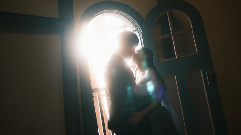 我会告诉你们在这个场景下,哪种情绪是最合适的。在需要的时候,我也会指导动作和姿势,但真正美好的瞬问永远是自然流露出来的。“放松一点”“自然一点”是根本不知道该怎么执行的建议。不如待在自己的节奏里,就放松了,就自然了。开始拍照后专注于你脑海中要还原的情感,两人如平日般说说笑笑,就容易找到松弛且有感染力的状态。而捕捉到这些情感外泄的瞬间,就请放心交给我吧。